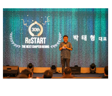 박태형 인포뱅크 대표가 창립 30주년 행사에서 발언하고 있다. [ⓒ 인포뱅크]