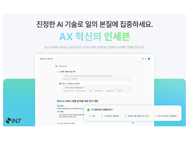 기존 AI 협업 서비스가 키워드 중심 탐색, 복잡한 요금 체계, 보안 취약성 등에서 한계를 보여온 것과 달리, ‘인세븐’은 ▲RAG 기반의 정확한 답변 제공 ▲투명한 종량제 과금 정책 ▲안전한 정보 보호 체계 ▲조직 맞춤형 AI 에이전트 제공 등을 통해 차별화된 경쟁력을 갖췄다.